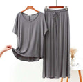 Grey V Neck Half Sleeves Shirt With Plazzo Trouser