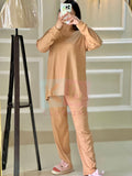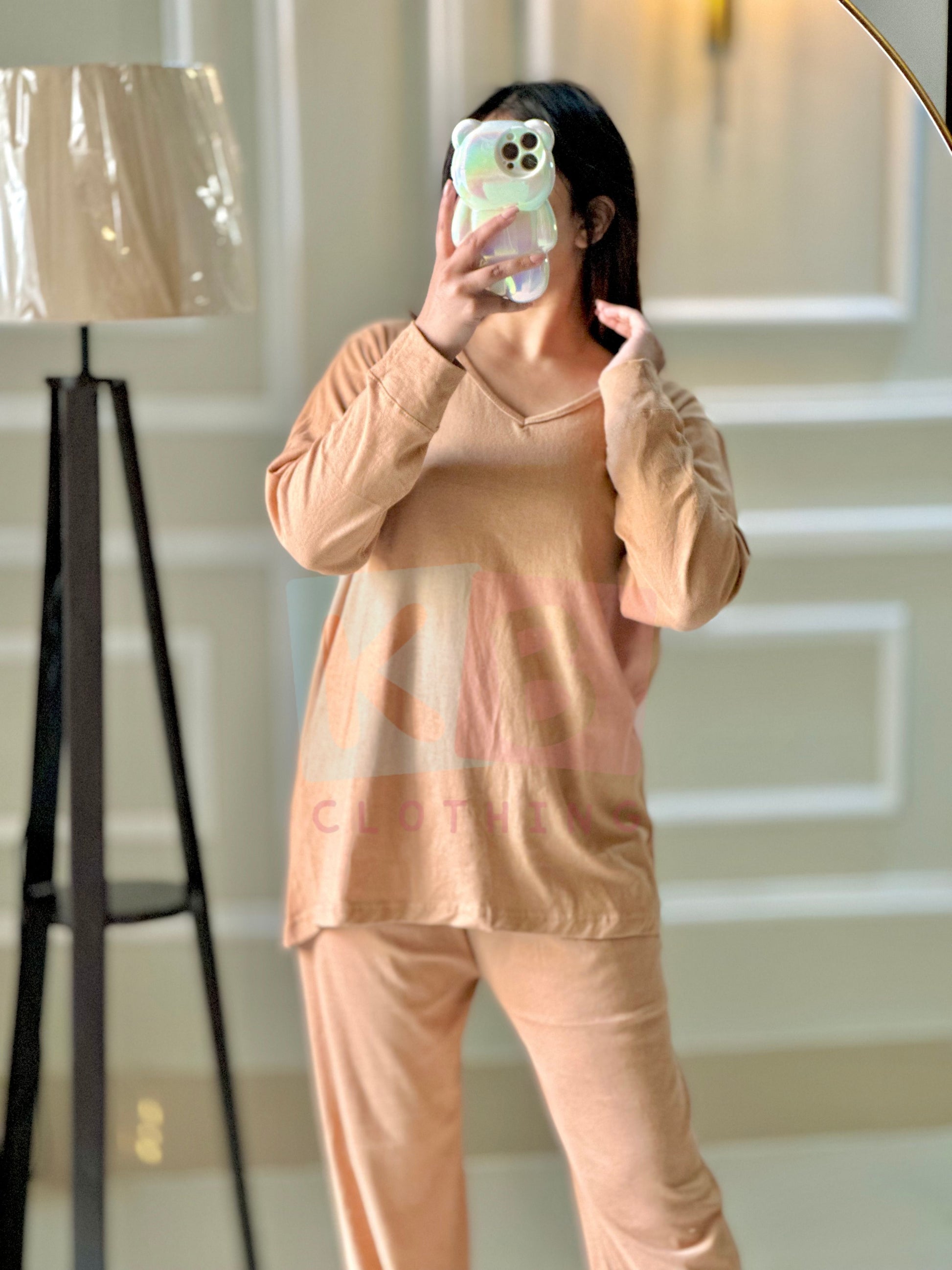 Plain Skin V Neck with Palazzo Style Pajama Full Sleeves Suit for Her